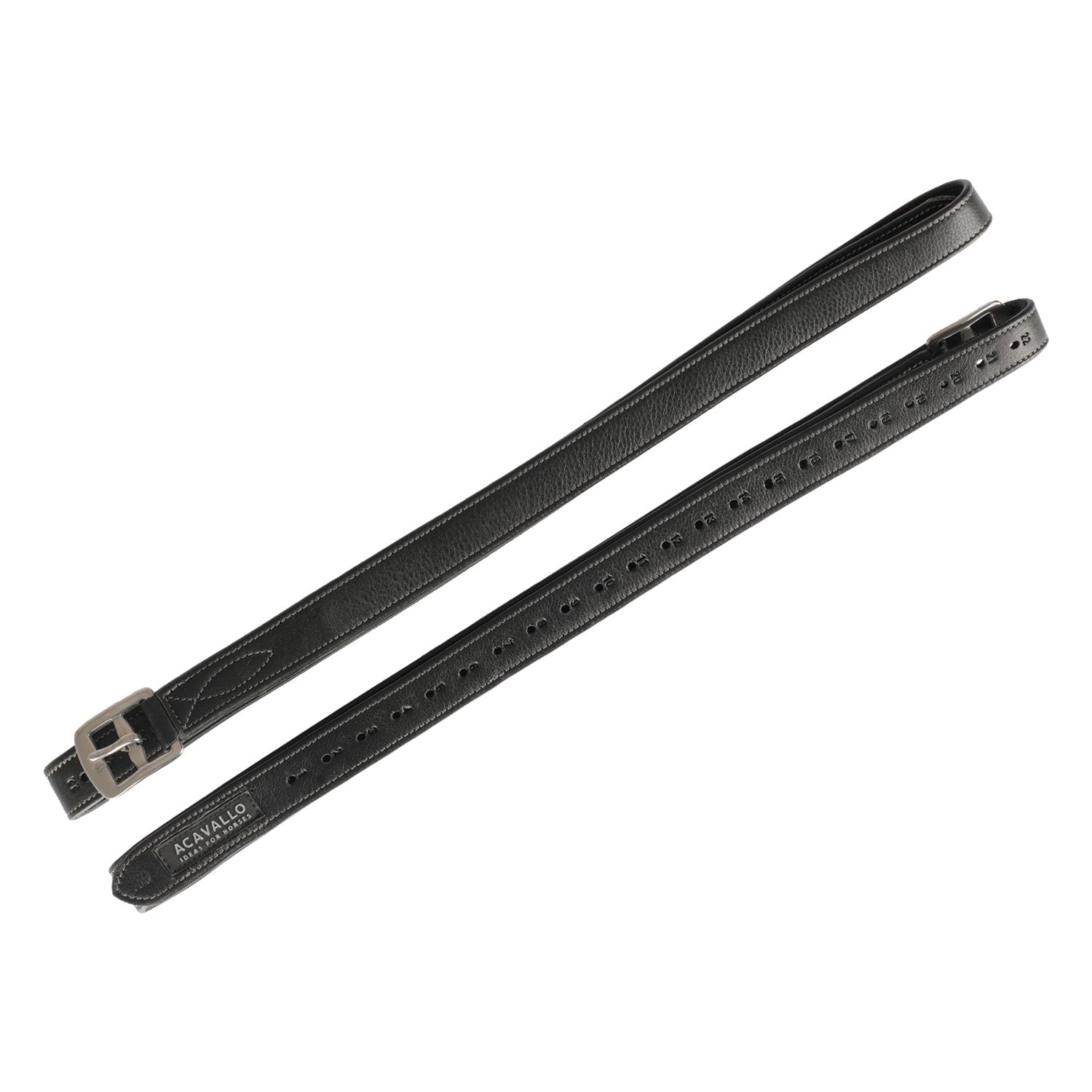 “Correas de estribo Acavallo® en piel de becerro de grano completo, con refuerzo interno de nylon. Combinan suavidad y resistencia.”