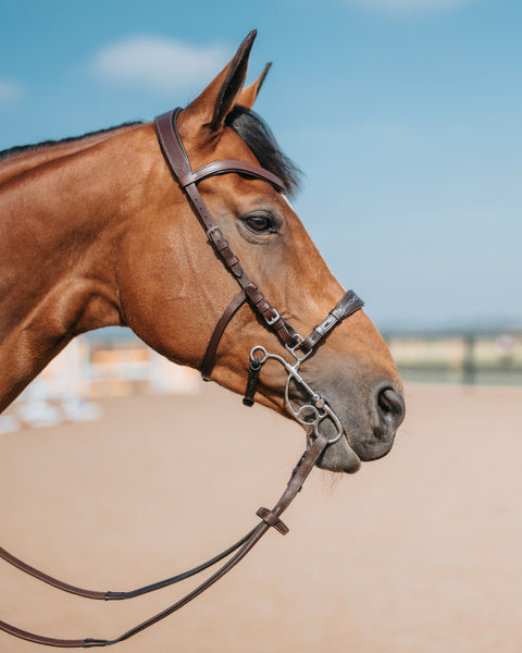 Puedes ajustar la cadenilla/correa de barbada, la muserola, la embocadura y la longitud de las patas sin necesidad de quitar la brida.